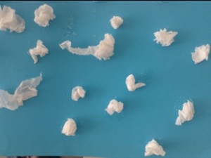 Dafür brauchen wir ein farbiges Tonpapier, weißes Krepppapier, Kleber.