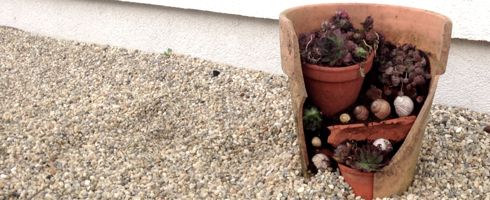 + ein (kaputter) Tontopf (oder Dachschindel, Fliese, …)